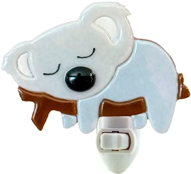 This adorable sleeping koala night light is both charming and functional. The unique design features a detailed, light gray koala peacefully sleeping on a brown branch. The light emitted from the night light provides a comforting glow that’s perfect for navigating in the dark while creating a relaxing ambiance. Easily plugs into any standard outlet and features a simple on/off switch. Ideal for nurseries, children’s rooms, or all in all anyone who loves these cuddly creatures.